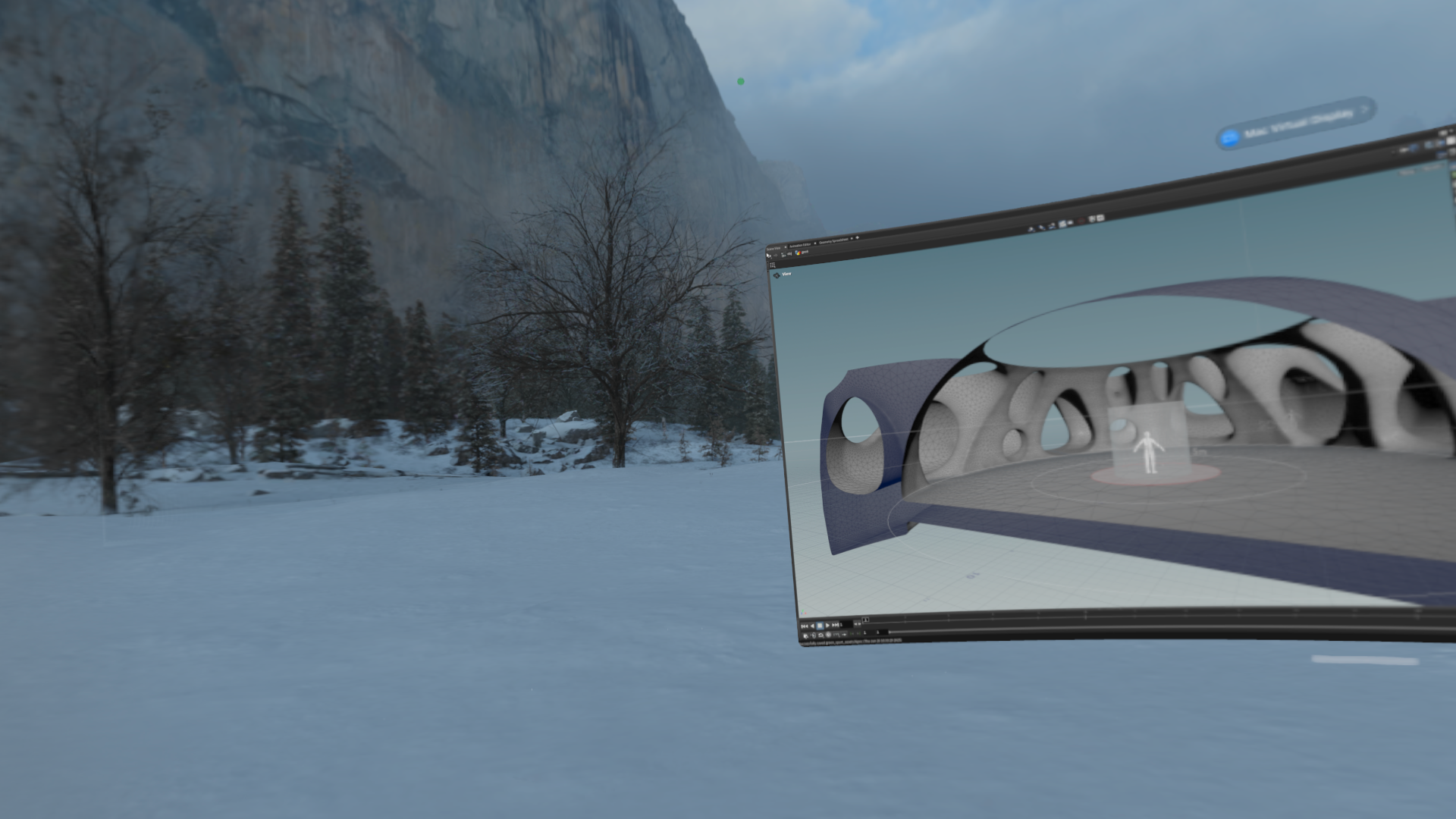 Anyways, I was the other day iterating on our game environment. I use Mac Mirror on the AVP, and also I like to work immersed in an environment at 50% or so. That day, I was in Yosemite. My attention was pointed to a specific part of the scene that I don't typically notice, which had a tree. I was so fixated that I was leaning my head to look at it continuously; it felt a bit like being art student again, copying a model from behind the easel, so the whole feeling mix of repetition, patience, and context was there when it struck me.