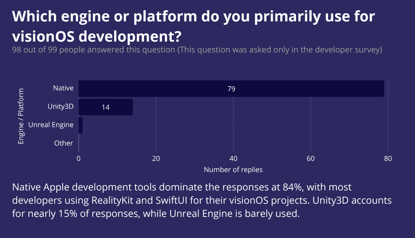 Apple Vision Pro was released in 2023, which represented a significant milestone. Strong user reactions quickly brought attention to the challenges app developers run into. For example, lack of critical mass and difficulty reaching customers. So, improvements that alleviated these problems, mixed with industry analysts' speculation for future hardware releases, were high on the wish list, as shown by social media and surveys.