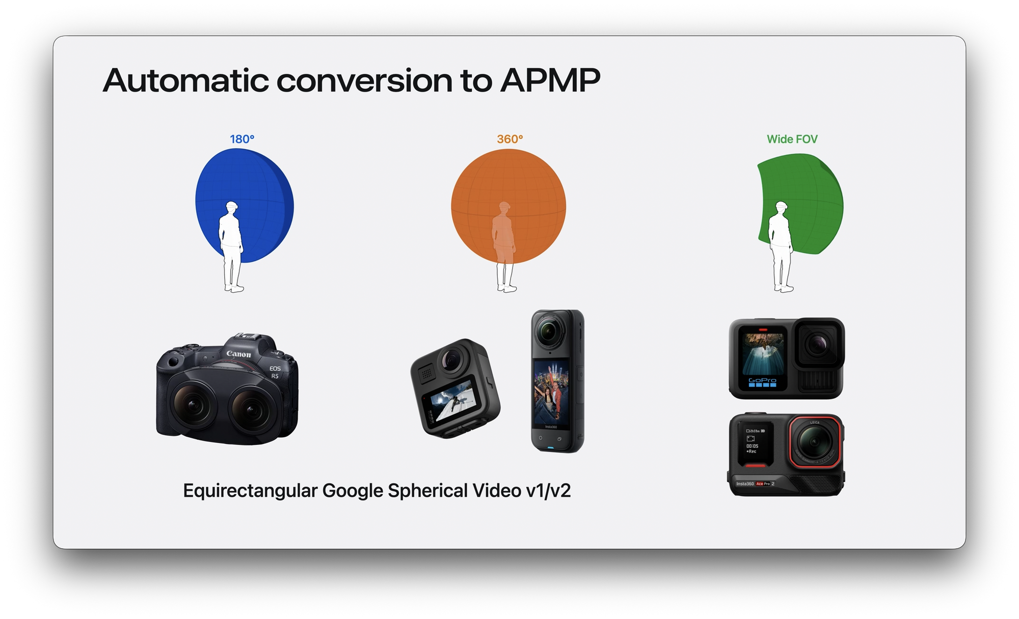 - Apple Projected Media Profile (APMP), Apple Spatial Audio Format (ASAF), Apple Positional Audio Codec (APAC), Apple Immersive Video (AIVU), etc., are just impressive, foundational industry definitions.