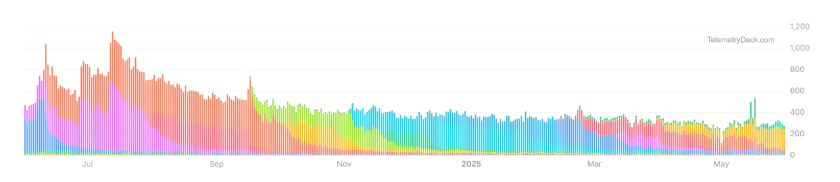 The ongoing trend continues to involve an increase in sample code and documentation. Spatial Computing maintained a similar amount of 26 sample code projects from 29 in 2024 (a long way compared to the original 2 in 2023), and the number of new articles has also remained stable since 2023, at about 20 per edition.